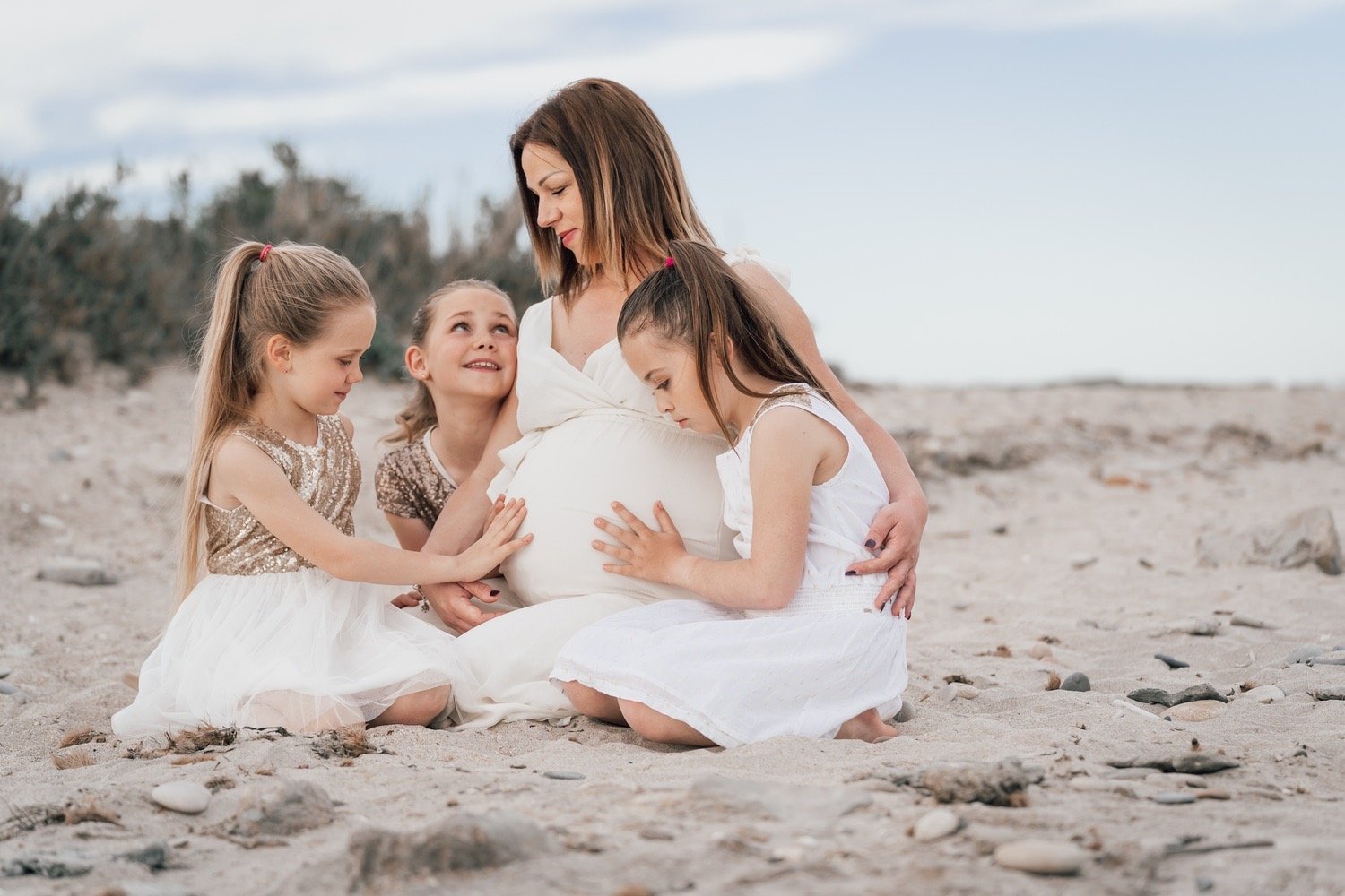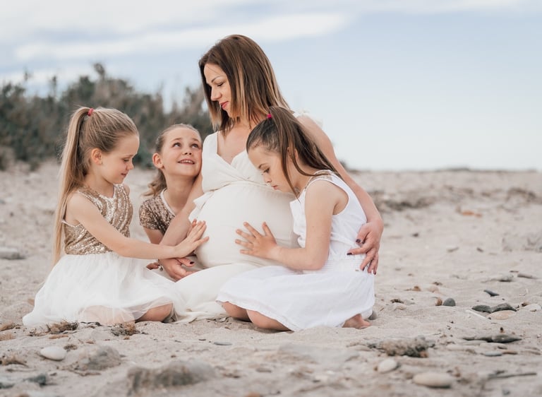 Participation de la Famille : Cette période permet également d'inclure conjoint et enfants dans la séance photo, tout en mettant la future maman au centre de l'attention. Cela permet de capturer des moments de complicité et de joie en famille.