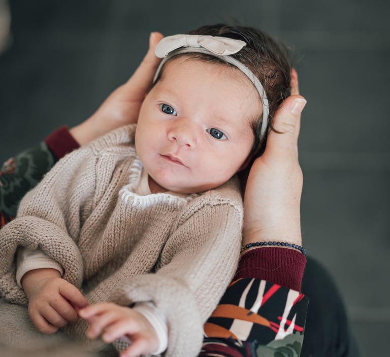 La Séance Photo de Bébé : Après la naissance de votre bébé, nous planifions ensemble une séance photo d'environ une heure pour capturer les premiers instants de vie de Bébé. Cette séance se réalise à votre domicile pour assurer tout le confort et le nécessaire de Bébé. Nous créons ensemble un environnement sûr et apaisant pour votre bébé, afin d'obtenir des images douces et tendres.